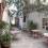 Gorgeous little blue windows for breeze and to peer out of. Step off the hot street into a cool breezy little garden. Was cheap!